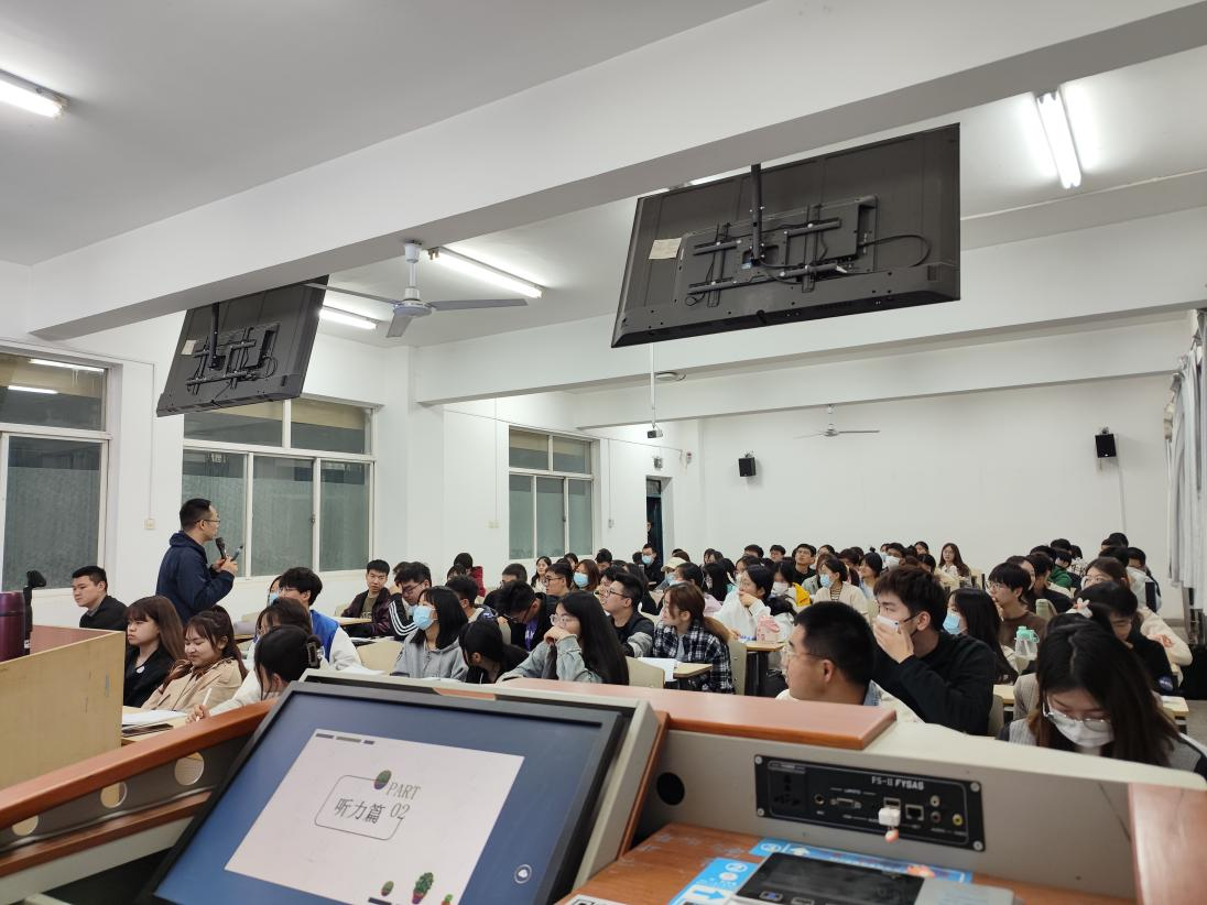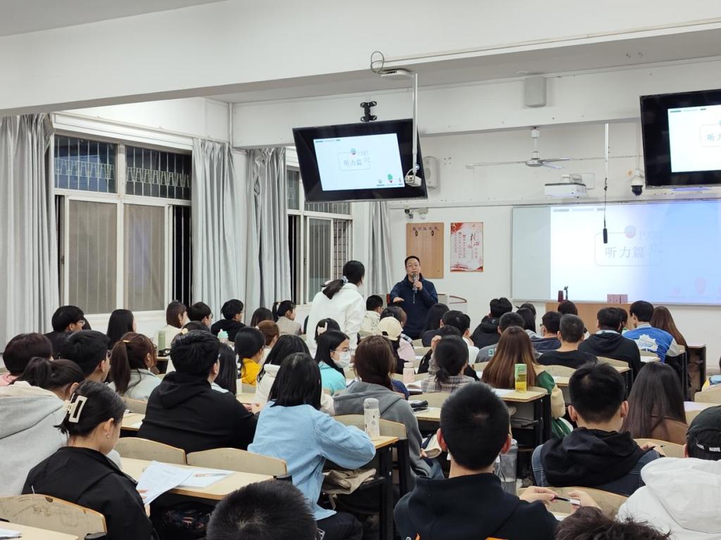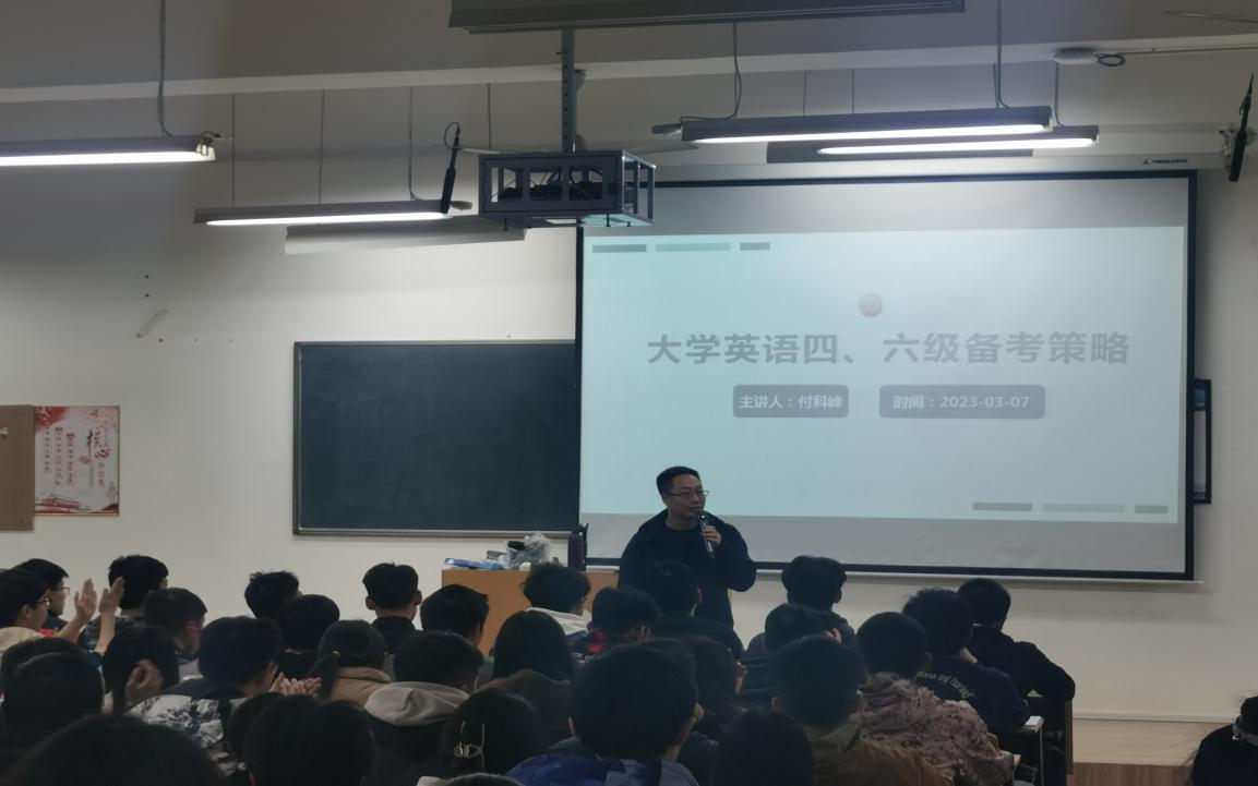 3月8日晚,澳门正规电子游戏平台举办了英语学习规划讲座暨四六级考试动员大会,外语培训中心主任付科峰应邀作了题为“大学英语四、六级备考策略”的专题讲座。全校近600余名学生参与聆听,讲座取得了很好的反响。