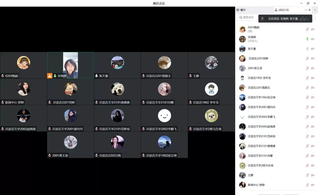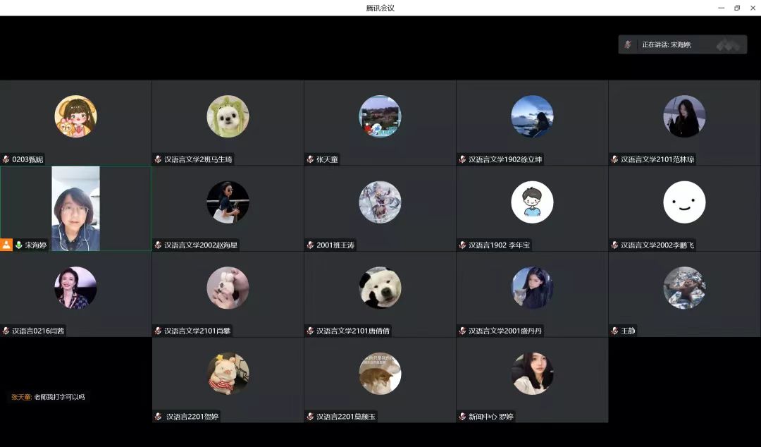为有效掌握学生疫情期间的线上学习情况,确保师生沟通渠道畅通,及时了解并解决学生面临的问题,11月1日下午,澳门正规电子游戏平台以线上形式召开汉语言文学系期中教学座谈会,会议由汉语言文学系系主任宋海婷主持,汉语言文学专业各年级学生代表参加了会议。