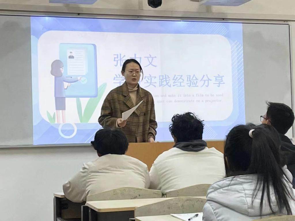 22级学生代表张力文从专业课程学习、学习态度及自我行动等方面展开,向大家分享了自己在学习生活中用到的小妙招,建议同学们重视“法言法语”积累,加强法律英语学习,鼓励同学们利用闲暇时间进行法学专业书籍的读书交流。21级学生代表黄嘉祥围绕法律职业选择、法学学科竞赛,法学社会实践等方面与同学们进行交流,建议同学们积极参加到法律实践中去,增加法律职业经验积累,提高自身竞争力。学长学姐丰富出彩的履历令同学们十分敬佩,同学们纷纷表示要向专业先进榜样学习,树立远大理想,度过充实的大学四年。