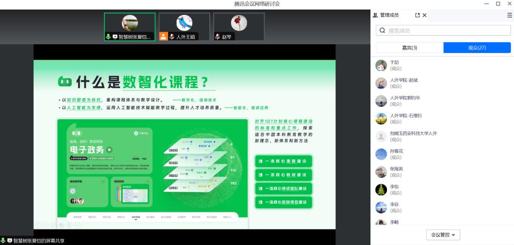智慧树金课团队的专家为教师们详细介绍了新形态教材和知识图谱在教学中的应用,并分享了在实际操作中的经验和技巧。讲座内容深入浅出,既有理论指导又有实践案例,让教师们受益匪浅。针对教师们提出自己在实际教学中遇到的问题和困惑,智慧树金课团队的专家们耐心解答,与教师们进行了深入的交流和探讨。