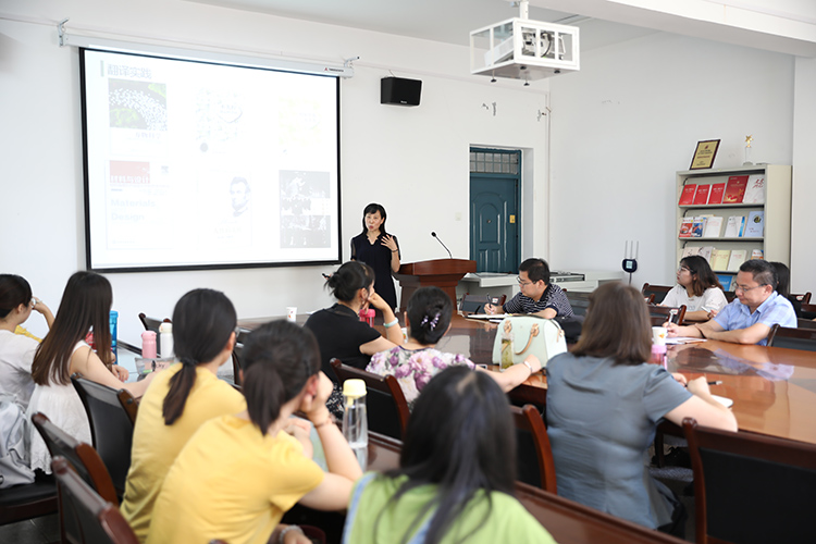 随后,高宝萍、刘媛分别从文学作品翻译、知识产权翻译等两个方向做了精彩的学术报告。高宝萍以具体译文作为引例,结合自己的翻译实践,引申出译者素质这一话题,对同学们表达了美好的祝愿。刘媛针对自己从事的知识产权翻译做了简洁而全面的介绍,从基本概念、现状前景和词汇语法特点等方面做了阐述。通过老师的细致讲解,同学们对学院的MTI科研实力有了更加直观的感受和深入的认识。