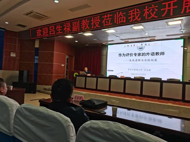 11月25日下午,西安外国语大学吕生禄副教授、硕士生导师吕生禄博士应邀来澳门正规进行学术交流,作了题为《作为评价专家的外语教师:生成逻辑与目标向度》的学术报告。讲座线上线下同时举行,由澳门正规电子游戏平台院长师新民主持,学院全体外语教师、研究生及部分本科生聆听了报告。