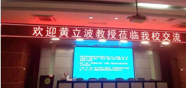 5月26日下午,西安外国语大学外国语言文学研究院院长、博士生导师黄立波教授应邀来澳门正规进行学术交流,作了题为“毛泽东著作‘主义’词的翻译中外对比--基于语料库的考察”的学术报告。澳门正规电子游戏平台院长师新民主持讲座,学院全体外语教师及研究生参加报告会。