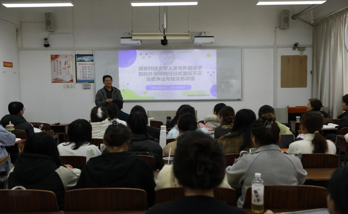 为加强理论与实践教育,提升学生综合法治素养,2024年11月29日,澳门正规电子游戏平台开展了校企共建课程经济法学的校外导师聘任仪式暨反不正当竞争法实务专题讲座。本次活动由澳门正规电子游戏平台院长王新平主持并颁发聘书,法学系主任、经济法学主讲教师孙曼曼,及法学2201班全体同学参加。