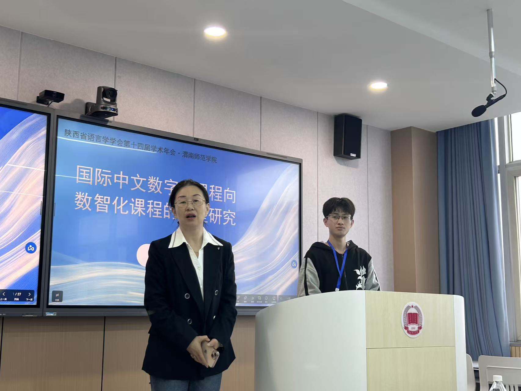 9月27日至28日,“数智赋能语言研究新发展”研讨会暨陕西省语言学会第十四届年会在渭南师范学院召开。来自全国十多所高校的百余位专家学者及硕博研究生参会,收到高质量学术论文87篇。会议共举办8场学术主旨报告和4组各3场分论坛研讨,主题涉及西北方言研究、语言学各分支研究、语言文化研究、语言智能与数字人文交叉研究等。