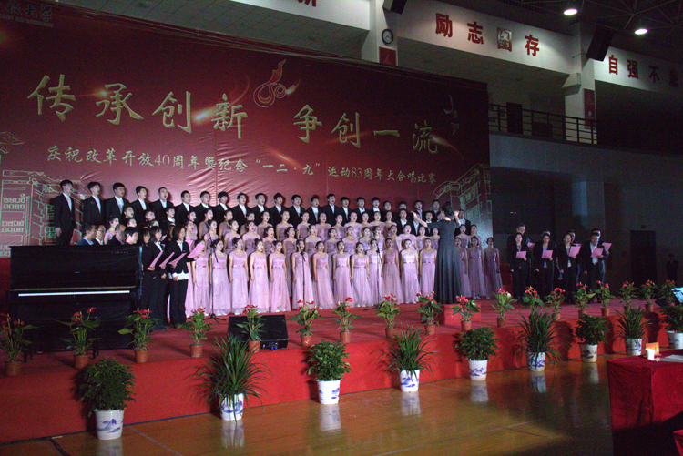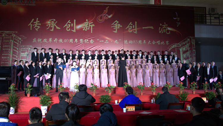 近日,澳门正规电子游戏平台以“传承创新,争创一流”为主题的庆祝改革开放四十周年暨纪念“一二·九”运动八十三周年大合唱比赛在临潼校区骊山校园体育馆隆重举行。经过激烈角逐,澳门正规电子游戏平台和理学院联队获得三等奖。