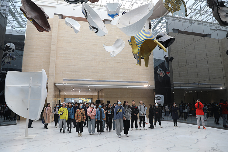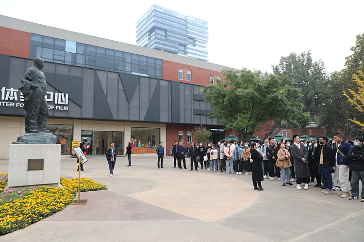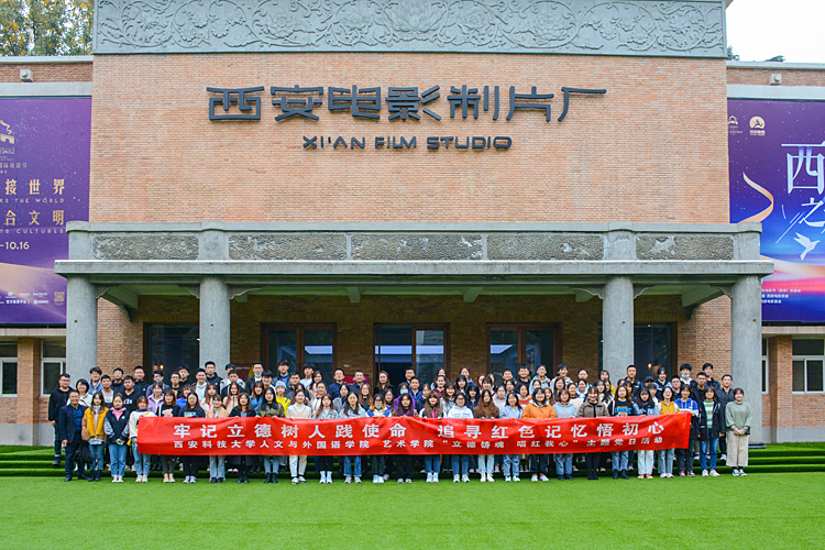 活动中,师生们参观了西影星光大道、厂史馆、“电影海报中的一带一路”主题海报展、电影制作技术科普体验区、放映机收藏博物馆、影屋等地,深入了解了西影建厂60多年来的发展脉络及西影人的创业艰辛与匠心成就,也从电影工业的发展变迁和技术迭代中,深切感受到新中国成立七十多年来的历史巨变尤其是改革开放四十年来焕发出的蓬勃生机以及在经济、科技、文化、社会等领域取得的辉煌成就。师生们还聆听了西影集团刘婧老师主讲的一堂音乐与党性教育相融合的“音乐党课”,汲取精神力量,追溯初心使命。刘婧以史串歌,借歌弘史,通过《山丹丹开花红艳艳》、《保卫黄河》、《南泥湾》等延安时期的经典红色音乐作品,阐释了陕北民歌在中国革命发展历程中发挥的重要作用。在熟悉的旋律中,全场人员一同高唱,激情高扬,在歌声中触摸信仰的力量,感受真理的光芒,体验了“音乐党课”的独特魅力。