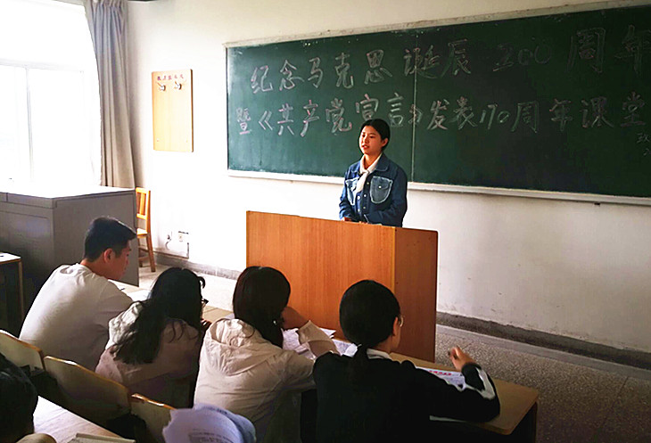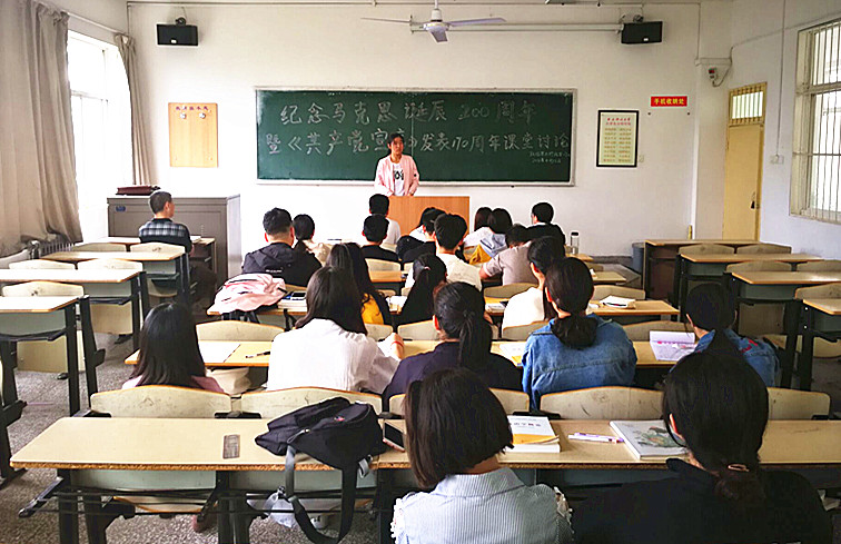4月28日上午,澳门正规电子游戏平台在临潼校区骊山校园举办纪念马克思诞辰200周年暨《共产党宣言》发表170周年课堂专题研讨活动。活动由政治学与行政学系主任张立进主持,政治学与行政学1701班全体学生参加。