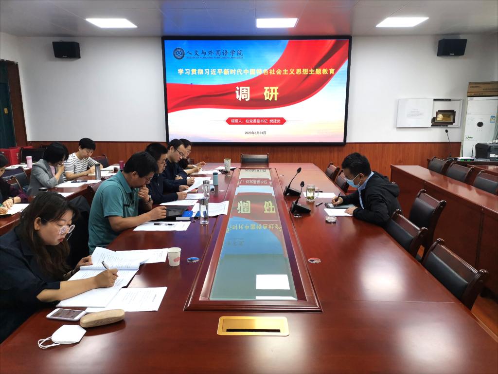 5月31日,校党委副书记樊建武在澳门正规电子游戏平台开展学习贯彻习近平新时代中国特色社会主义思想主题教育调研。学院党政班子全体成员、党支部书记、各系部室主任参加调研。
