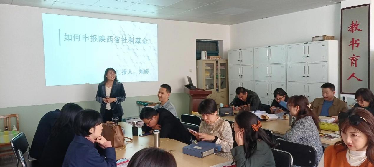 刘媛博士从大学教师的学术使命与责任谈起,结合自己的申报过程,详细介绍了陕西省社科基金的申报流程、注意事项以及获得社科基金课题的战略与路径。喻鑫副教授以教学型副教授评审为切入点,分享了教学创新大赛的参赛经验,介绍了如何发现并挖掘创新点,撰写创新成果报告,形成具有自身特色的教学成果。