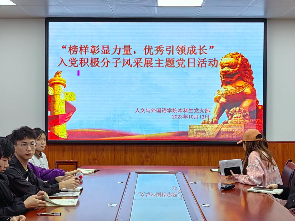 为深入开展学习贯彻习近平新时代中国特色社会主义思想主题教育,认真落实新时代党的建设总要求,充分展示我院入党积极分子的先进形象,激励广大学生群体对标先进、见贤思齐,10月13日,人外学院本科生党支部于二教226会议室开展“榜样彰显力量,优秀引领成长”入党积极分子风采展主题党日活动。学院本科生党支部书记李银亮、本科生党员代表、入党积极分子代表、学生干部代表以及低年级学生代表,共计60余人参加本次活动。