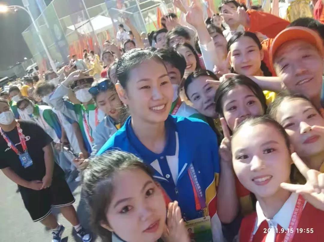 开幕式演出结束后和中国女排队员颜妮在一起(右下为何雨露)