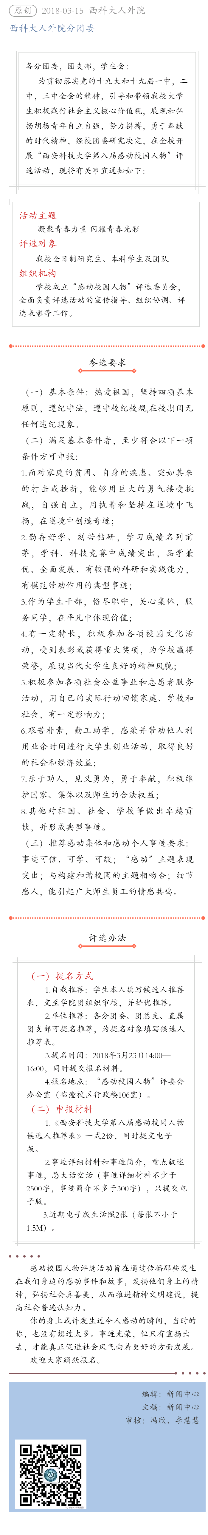 关于举办“澳门正规电子游戏平台第八届感动校园人物” 评选活动的通知