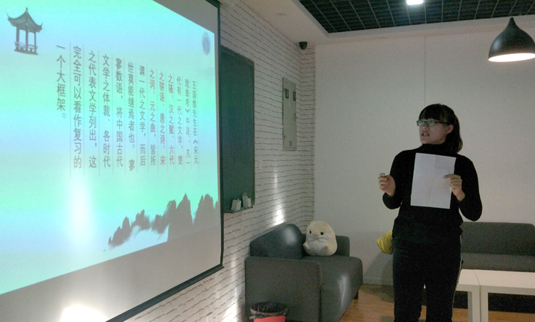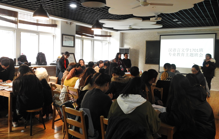 根据班主任老师的安排、指导,全班同学分成五组分别对古典文献学、中国现当代文学、文艺学、古代文学、语言学及应用语言学等专业课程,就课程性质、发展历史、考研方向、推荐院校和就业前景等方面进行了详细的介绍,并围绕如何切实提高专业素养进行了深入讨论,还参加了成语接龙、飞花令等互动游戏。现场气氛热烈。