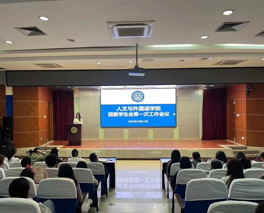 为推进学院学生工作,进一步做好学生干部培训工作,10月17日晚,在骊山校园图书馆二楼报告厅,人文与外国学院学院召开2023-2024学年第一学期团委学生会全体干部工作会议,学院团委学生会全体学生干部参加了会议,会议由学院团委副书记杨博婷主持。