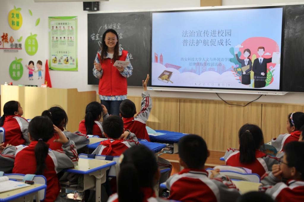 为进一步宣传贯彻习近平法治思想,推进青少年法制教育,积极响应开展学习贯彻习近平新时代中国特色社会主义思想主题教育专题学习,引导团员和青年在奉献社会、服务群众中锤炼思想、锻炼成长,10月25日,澳门正规电子游戏平台法学2201团支部成员与临潼区行者街道司法所共赴临潼区金骊小学开展“法制进校园”知识讲座活动。