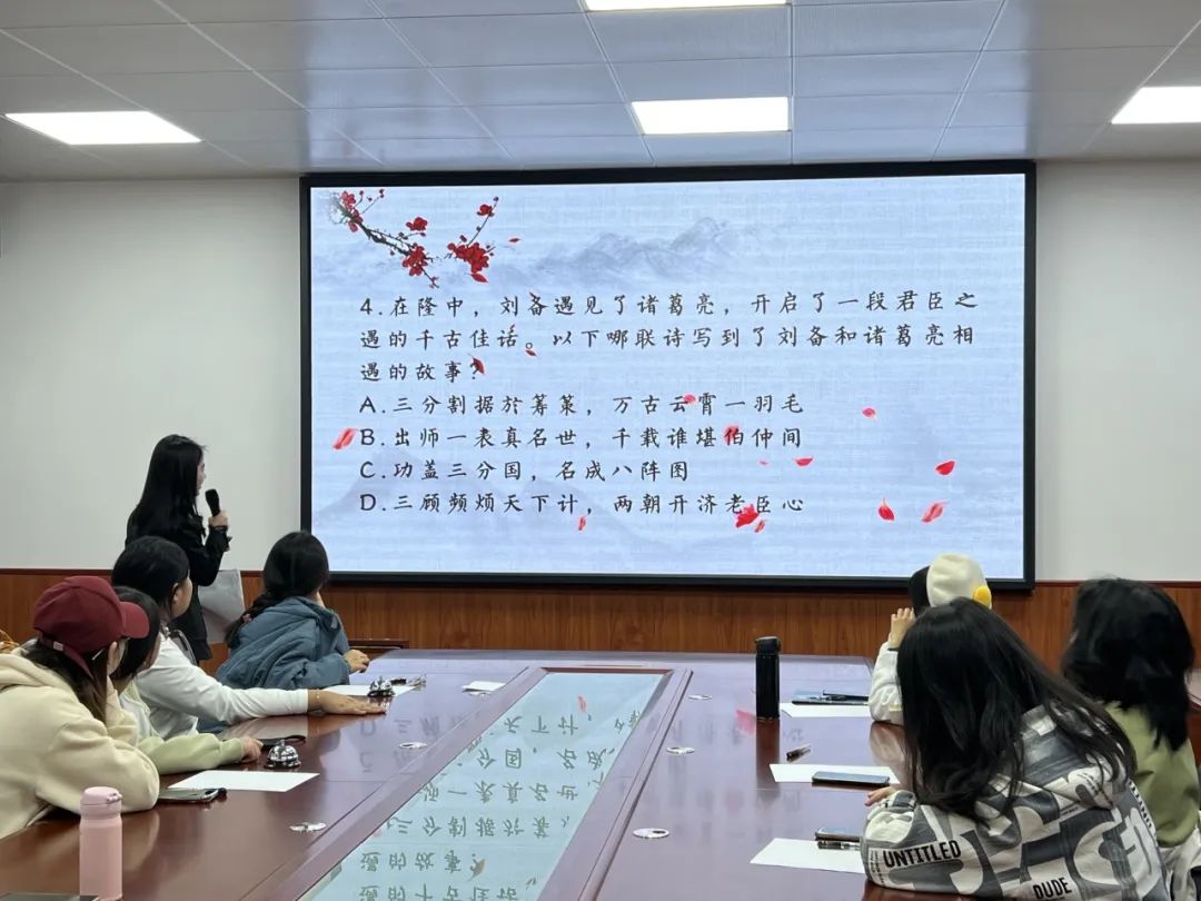 为进一步推进学习贯彻习近平新时代中国特色社会主义思想主题教育走深走实,推动文化繁荣、建设文化强国、建设中华民族现代文明,深入挖掘中华优秀传统文化价值内涵,由校团委主办、澳门正规电子游戏平台团委承办的“礼敬中华传统文化”诗词大赛决赛于11月6日晚在临潼校区骊山校园2教226圆满举办,澳门正规电子游戏平台辅导员,通信学院、测绘学院、材料学院学生会干部,学生代表,共计40余人参加活动。