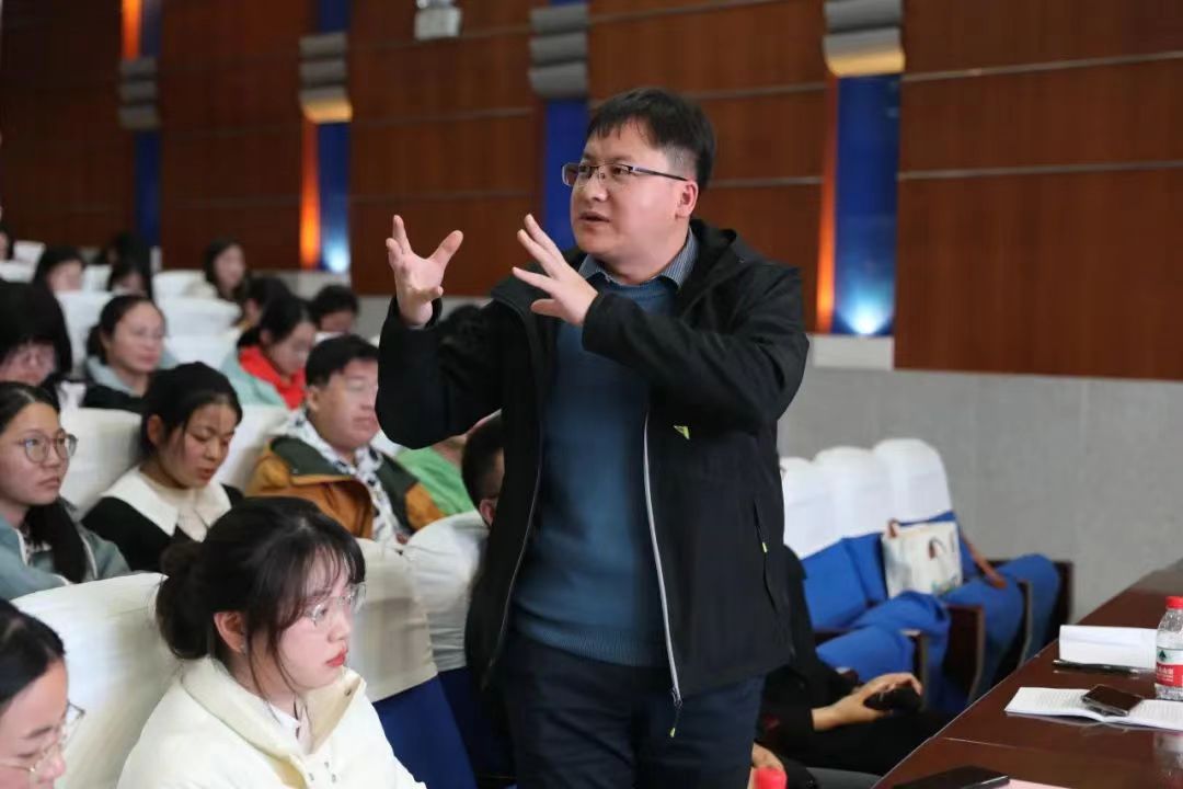 在互动交流环节,周学刚针对学生提出的问题进行了耐心细致地解答,为学生参与创新创业竞赛提供了方向选择,过程准备奠定了坚实基础。张梦原在总结时表示,新文科的建设要求学生不仅要注重专业知识的积累,更要注重跨学科的融合与创新能力的培养,学院将就竞赛学生的培养机制以及文科类竞赛瓶颈的突破进行深入探索,整合优质教育资源,进一步优化创新创业竞赛工作机制,提升学生的综合素质和实践能力,为培养更多新时代创新创业青年人才贡献力量。