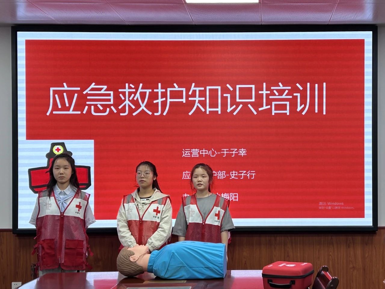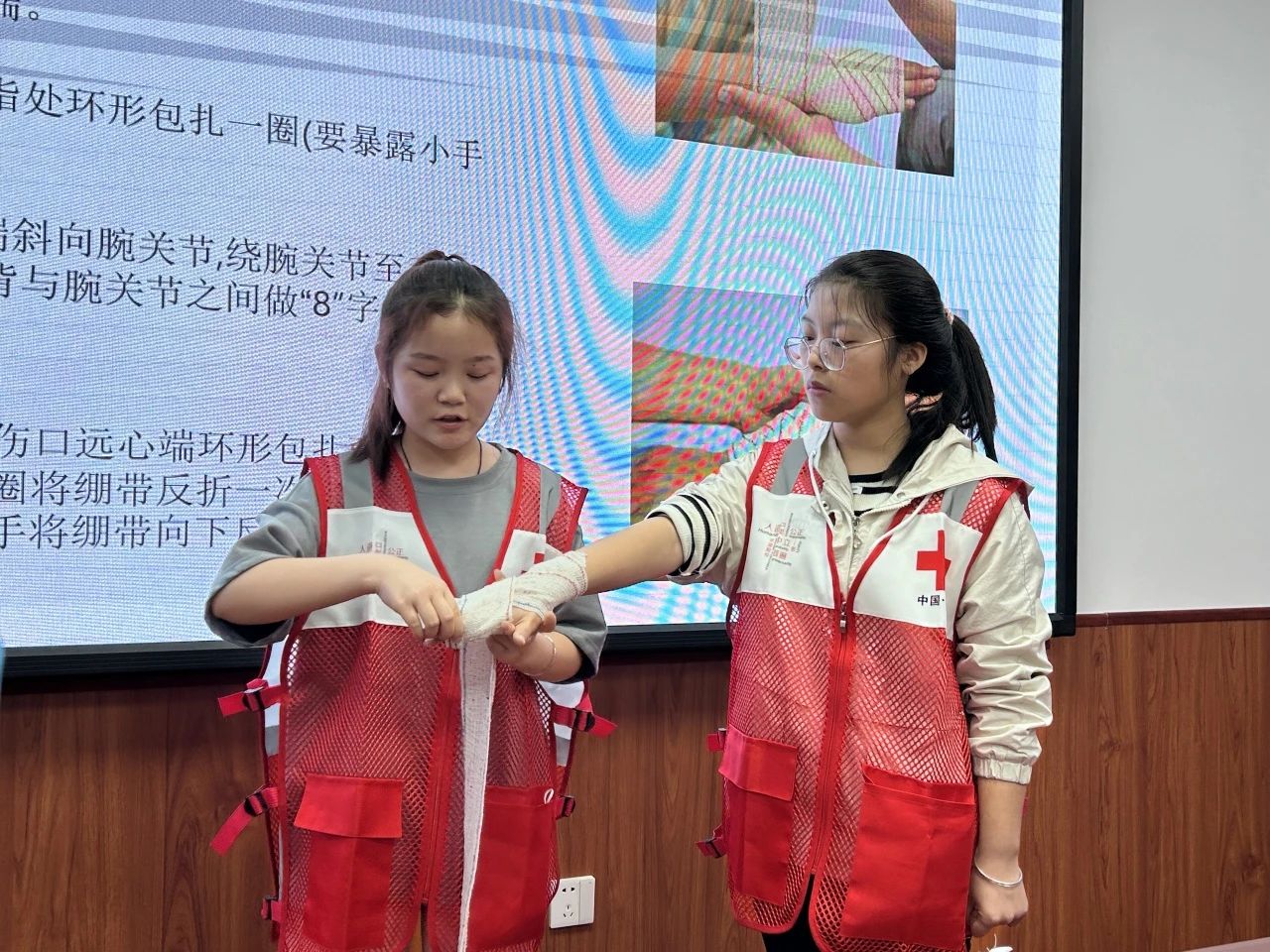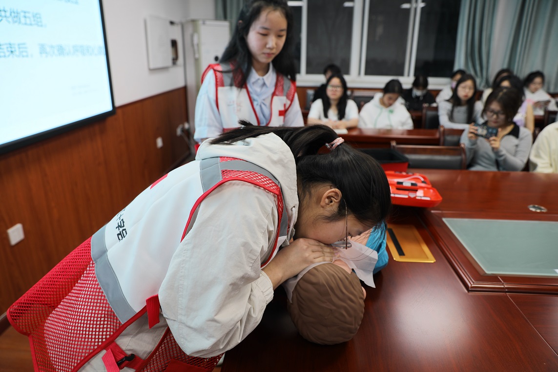 在讲解过程中,红十字会成员运用人体模型,现场演示了正确的心肺按压和人工呼吸以及伤口包扎方式,帮助学生更好地掌握急救技能,真正做到了理论与实践相结合。