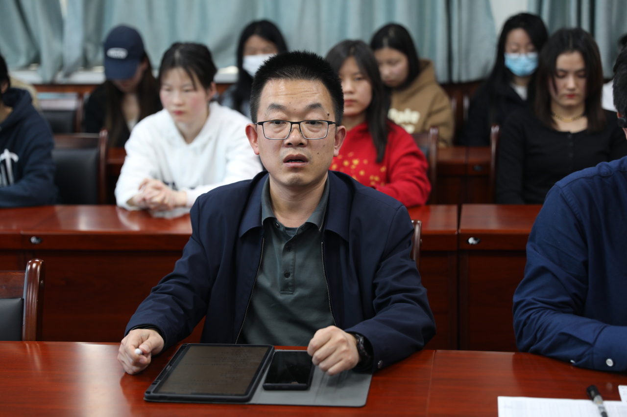 王新平通过真实的数据和身边的事例阐述了就业工作面临的严峻形势,他强调,全体未就业学生要认识到就业工作的重要性,一是要立足实际、明确目标,要对自己进行准确定位,结合实际情况确定目标;二是要持之以恒、努力奋斗,无论如何选择,要有锲而不舍的精神去坚持;三是要脚踏实地、奋楫笃行,要有开阔的眼界和远大的志向,通过实践去提升自我。最后,他鼓励学生要树立正确的择业观、就业观,增强就业信心,砥砺奋进、挺膺担当,书写最美的青春答案。