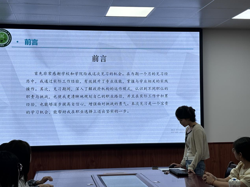 凌丹彤以《暑期大学生到政府机关见习感悟分享》为题,介绍了暑假期间在西安市体育局的见习经历,使同学深刻感受到了实践在职业规划中的重要作用。