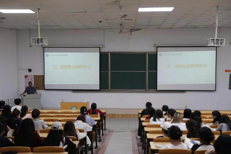 最后,辅导员带领全体学生对《澳门正规电子游戏平台学生违纪处分规定(修订)》进行逐条学习,结合日常发生的案例强调了遵守纪律的重要性,引导大家遵守校级校规,杜绝违纪行为的发生,争做文明大学生。