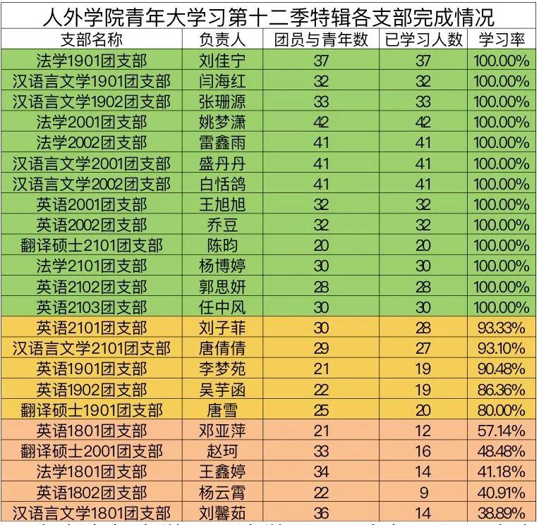 接下来,将本期青年大学习各团支部学习情况通报如下:
