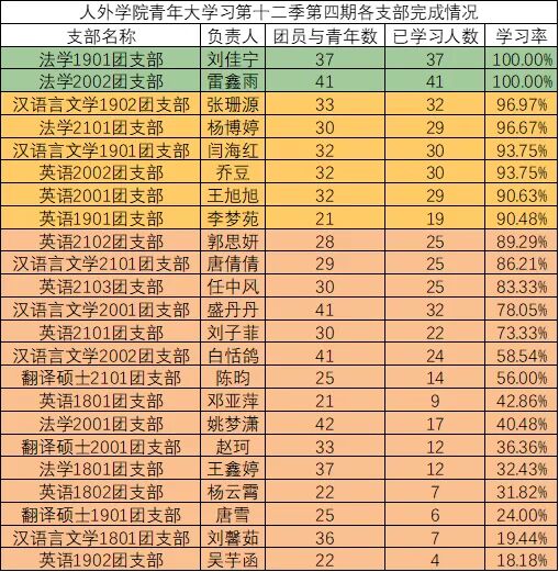 接下来,将本期青年大学习各团支部学习情况通报如下: