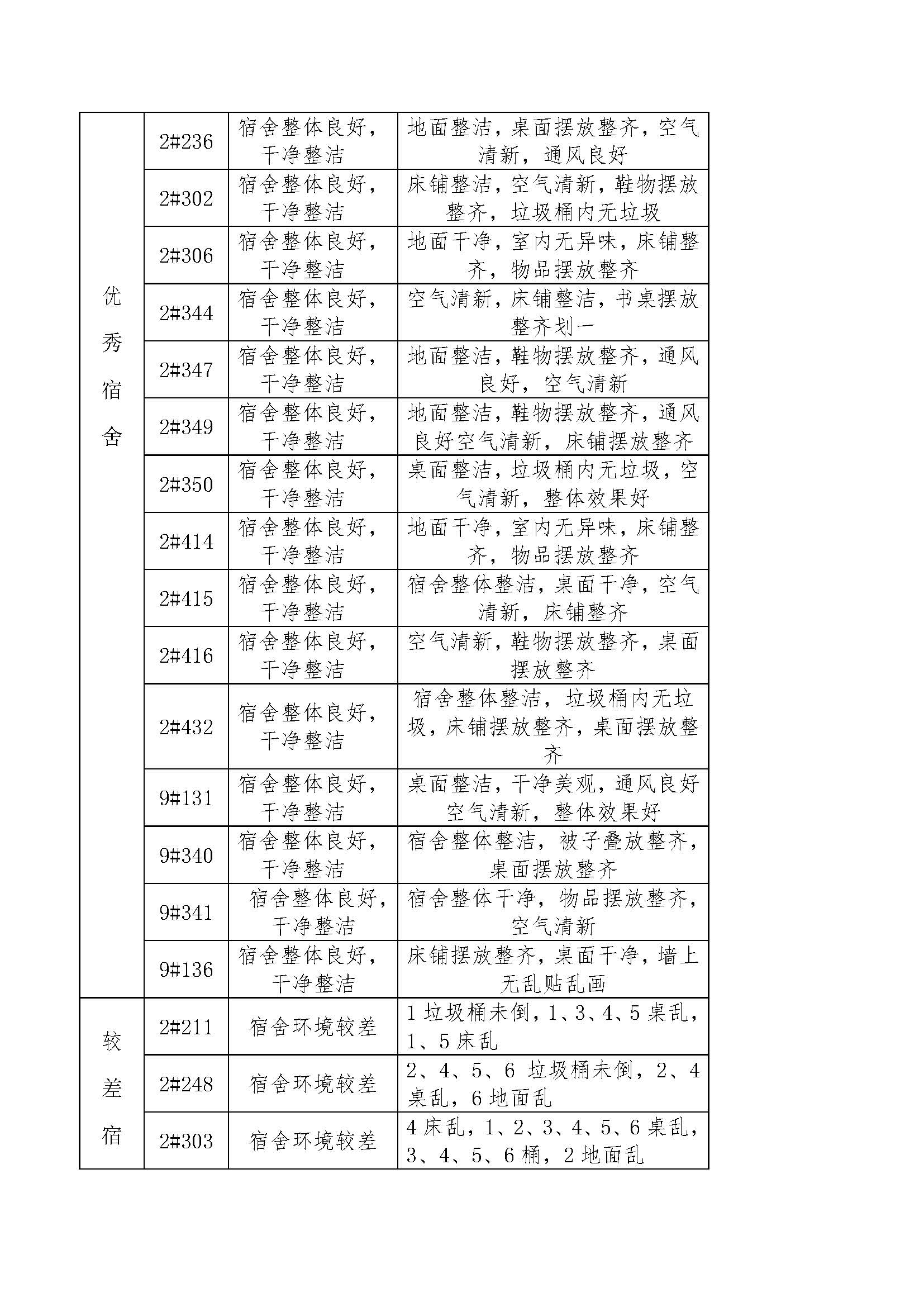 关于第十周学生宿舍检查结果的通报