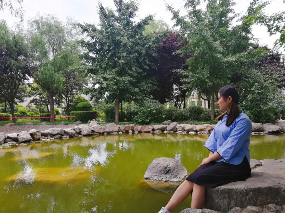 毕业前,许鸽在砚池旁的留影