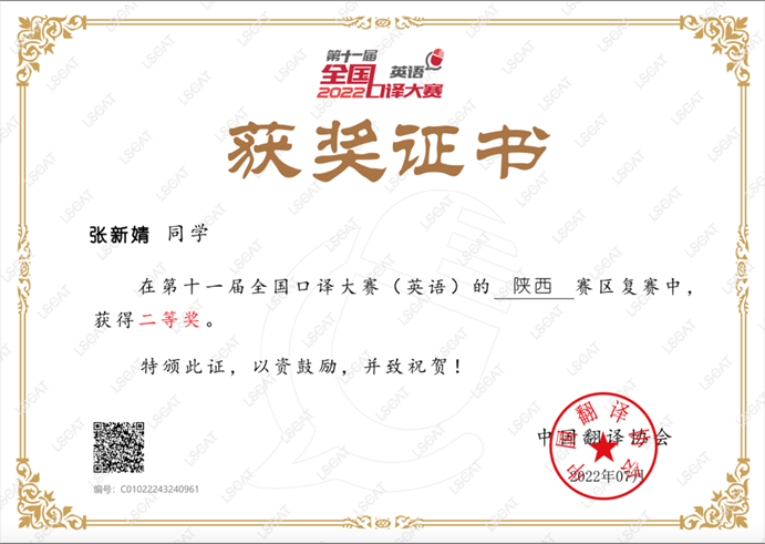 近日,第十一届全国口译大赛复赛落下帷幕,澳门正规电子游戏平台学子在陕西省省赛(复赛)中取得了优异成绩。经过选手的不懈努力和人外学院竞赛培训团队的悉心指导,澳门正规3位选手获得佳绩,成功晋级西部大区赛(半决赛)。