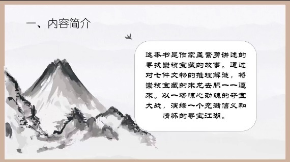 什么是时间轨迹,使用此创作手法写出的故事,又有什么不一样?与会12组同学在阅读《金银图·崇祯宝藏》、《金银图·天国密令》两本书之后做出了回答。各组分别对两本书的情节及艺术手法加以解读赏析,详细介绍了“刘亦然、陈蕾、赵劲夫、李小军”等主人公的寻宝历程。
