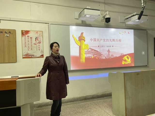 张晶晶以“共产党的光辉历程”为题,首先从中国共产党领导国人由救国走向兴国,富国,强国的过程,向学员们阐述了我党筚路蓝缕、不屈不挠的前进精神。并以同学们成长过程中的社会变迁为切入点,讲解了近年来我国国民生活的变化与我国制度建设方面的联系,行程万里,初心如一,她要求在座学生深切体会中国特色社会主义、和平发展的来之不易,发扬“吃苦在前,享乐在后”的精神,鼓励学员们要敢于追梦,敢于迎难而上,为中国梦的实现贡献自己的力量。