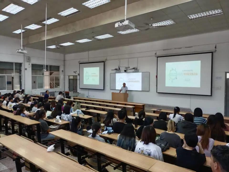 费秀水结合我院近四年毕业生考研录取人数、考公录取人数、出国留学人数等数据以及在整体学生的占比,并对比分析其他学院,指出了同学们在考研、就业中需要注意的问题。