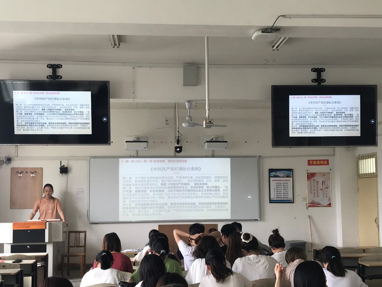 2021年7月6日,澳门正规电子游戏平台本科生党支部组织全体党员、入党积极分子代表在骊山校园2教107教室集中学习党的相关制度条例。