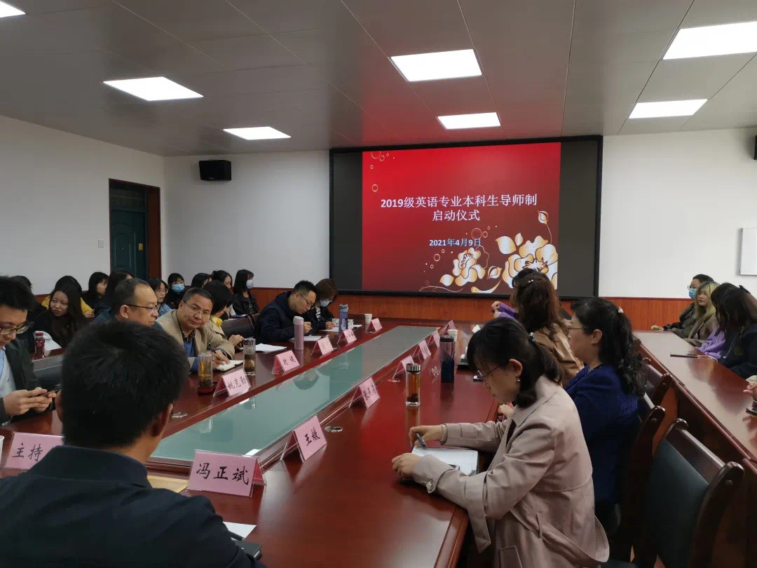 4月9日,澳门正规电子游戏平台“2019级英语专业本科生导师制”启动仪式在临潼校区骊山校园二教举行。澳门正规电子游戏平台副院长冯正斌、英语系全体教师和19级英语系全体学生参加活动。