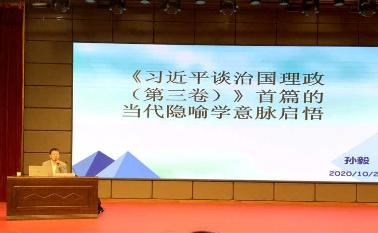 10月20日下午,澳门正规电子游戏平台举办了“《习近平谈治国理政》第三卷首篇的隐喻意脉启悟”专题学术讲座,广东外语外贸大学“云山杰出学者”、博士生导师孙毅教授应邀担任,梳理了当代隐喻学的发展脉络,并以《习近平谈治国理政》第三卷首篇为研究对象,探析了隐喻在政治话语中的关键作用。在问答环节,孙教授就隐喻分类、隐转喻界定等专业问题进行了耐心解答,并对论文选题、博士备考等实际问题提供了宝贵建议。