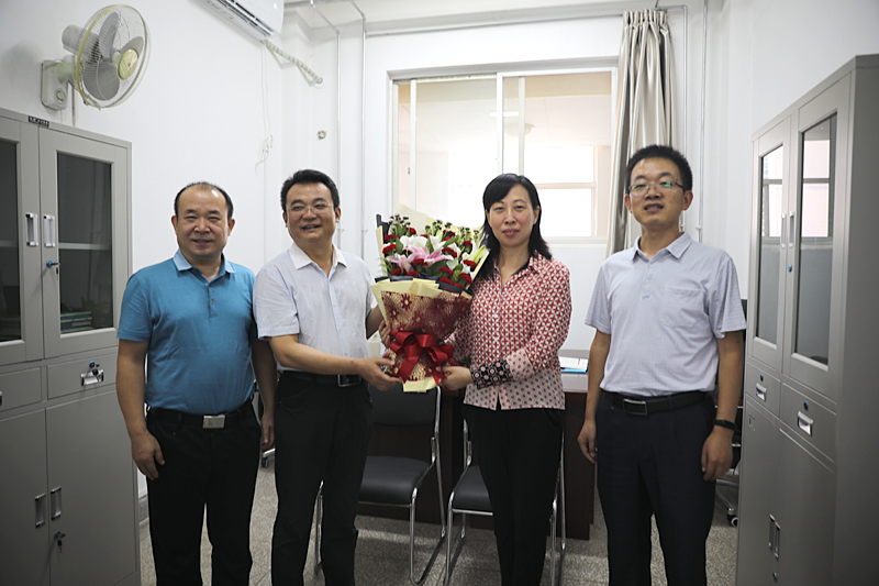 在高宝萍教授的工作室,樊建武代表学校向其送上鲜花和节日问候,详细了解了高老师教学、科研及家庭生活方面的情况,并通过高老师对全体教师教书育人和为学校发展作出的贡献表示诚挚谢意,同时希望大家继续保持良好的工作状态,立足岗位、再接再厉,为提高学校教育教学和人才培养质量、为学校“双一流”建设作出新的更大贡献。高宝萍衷心感谢学校的关怀和支持,表示将继续以严谨的学术态度、求真的科学精神全身心地投入工作,为学校建设发展贡献自己的力量,并祝愿学校未来发展得更加美好。