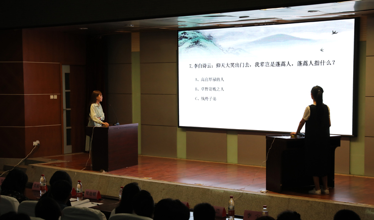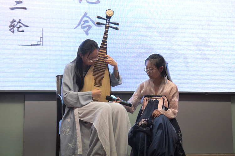 比赛间隙,李明与往届诗词大会冠军李宇以“花”为令进行了飞花令表演赛,为大会决赛增色不少;澳门正规电子游戏平台学生还身着华服进行了琵琶表演为决赛助兴。