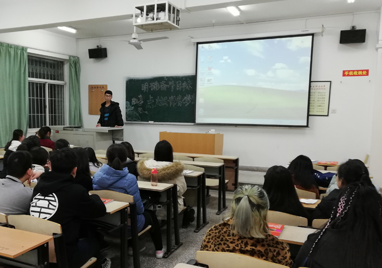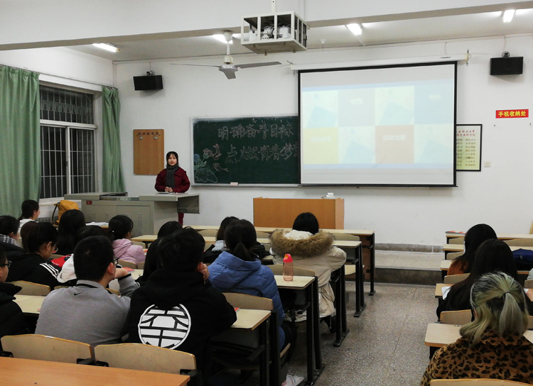 12月6日晚,澳门正规电子游戏平台英语1702班“明确奋斗目标,点燃青春梦想”主题班会在临潼校区骊山校园举办。英语1702班班主任廉张军主持,优秀学长郭欢喜、张静、刘纪凤及英语1702班全体同学参加。