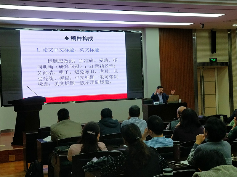 报告中,王和平针对外语学科日益增长的论文发表需求与外语类核心期刊版面数量有限之间的矛盾,分析了学术论文写作动机、外语类核心期刊栏目设置、论文审稿基本流程等问题指出“选题新颖、见解独到、方法科学、论据充分、论证深刻、结论可信”是优质学术论文的基本标准,并从题目凝练、摘要写作、论证逻辑、行文方式、参考文献等方面对外语学术论文写作进行了深度解读,鼓励大家通过关注研究领域前沿动态、参加学术交流会议、追踪知名学者研究动向等方式,加强学术积淀,凝练研究方向,提升学术修养,实现教研相长,勇于担当新时代赋予外语学人的新使命和新要求。