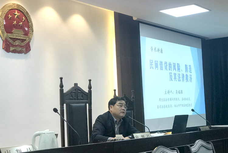 10月18日下午,澳门正规电子游戏平台在临潼校区综合楼模拟法庭举办学术讲座。周至县司法局副局长、县政协委员、县法律顾问团团长、西安市中级人民法院监督员吴福联应邀以《民间借贷的风险、防范及法律救济》为题,从民间借贷的概念入手,结合众多具体案例,详细介绍了民间借贷存在的诉讼时效、证据、效力等多方面的法律风险,提出了具体的防范措施和救济举措,并与师生进行了互动,热情解答了师生提出的问题,为师生理解和学习民间借贷及其风险防范提供了很多有益的参考。
