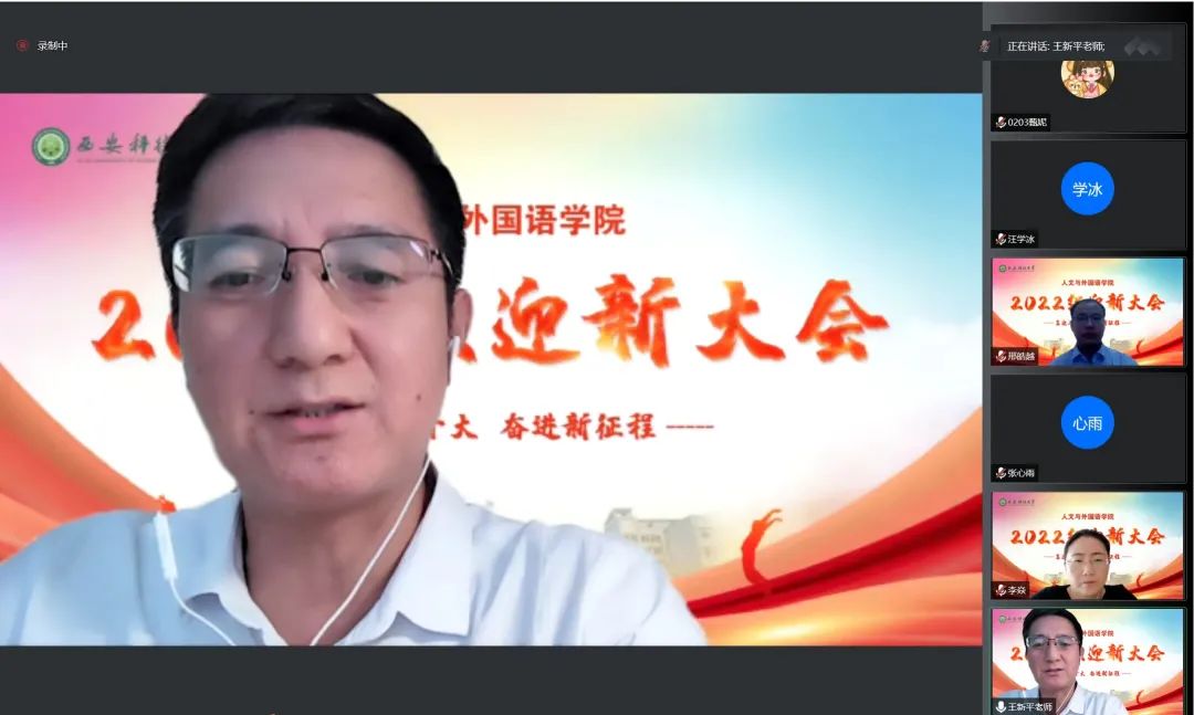 9月9日上午,澳门正规电子游戏平台2022级学生迎新大会以线上形式举行。学院党委书记费秀水,院长王新平,副院长张辉、李焱,学院教授委员会成员,学院工会、各系(部、中心)办公室、教务教学办公室、学生工作办公室、团委负责人,全体辅导员,教师代表、在校生代表、2022级全体学生参加大会。学院党委副书记邢皓越主持大会。