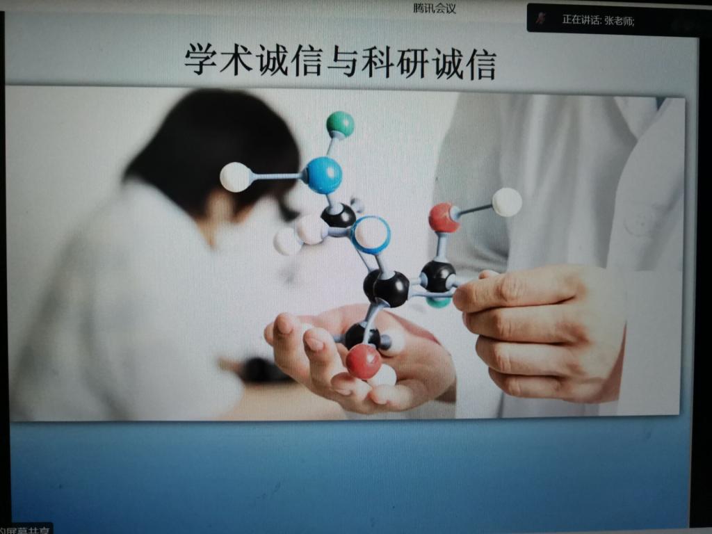 会上,张辉向全体参会研究生们强调了学术诚信的重要性,讲述了科研诚信和科研行为不端的定义、科研行为准则、学术不端行为的具体表现、学术不端的危害、我国科研诚信建设实施办法等相关内容,会后对会议进行了总结。一方面感谢王新平和张军锋的莅临指导,一方面对2022级翻译学研究生们提出期望。她表示,希望全体2022级的翻译学研究生们能在学习之余多看一些前沿论文,和名家论著,不断丰富自身学识积累和学术素养,为日后的学术生活打牢基础。