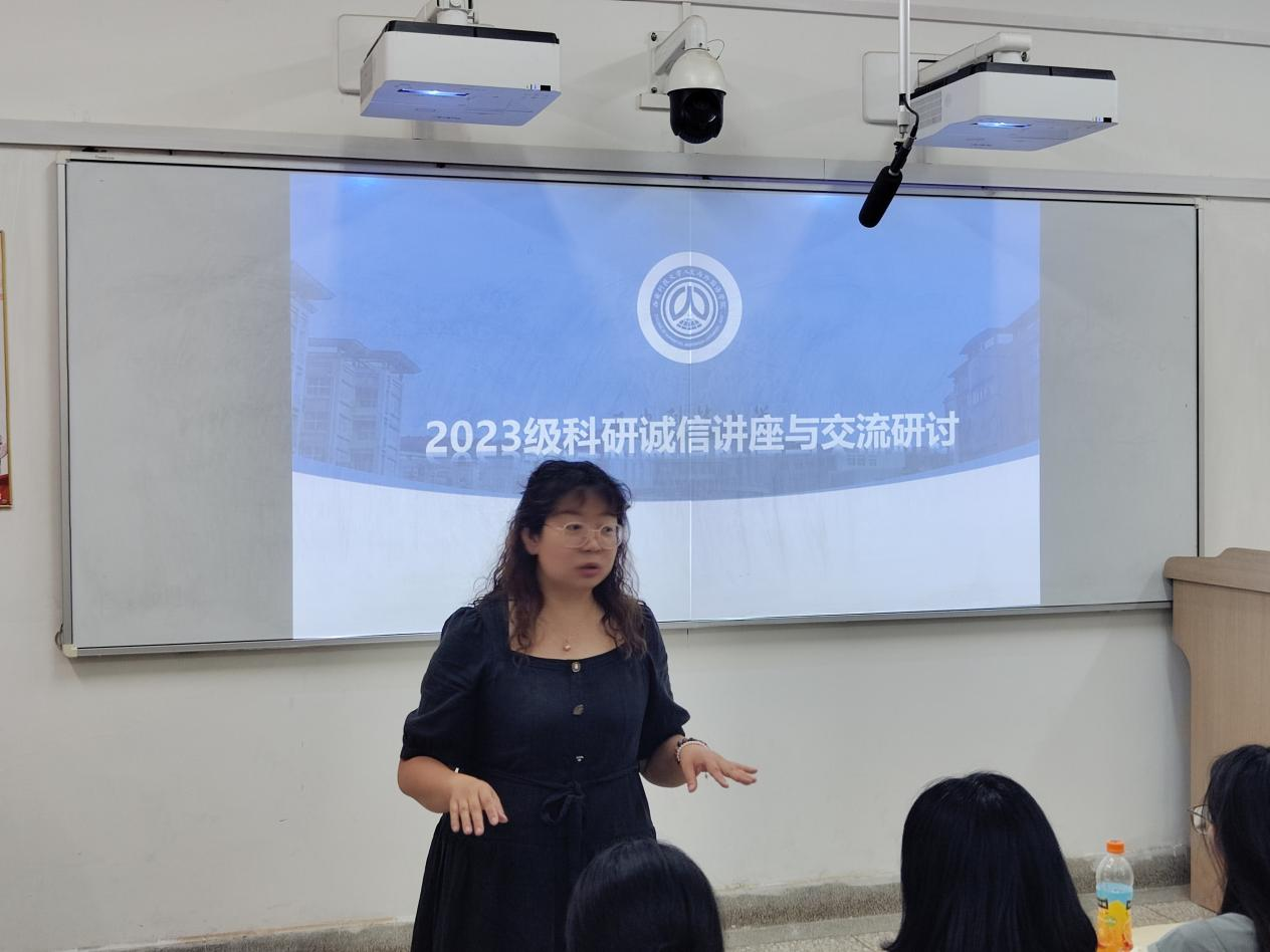张辉详细介绍了科研(学术)行为及其具体表现、案例、危害,并告诫同学们应该杜绝学术不端行为,立足一手资料、凝练思想,踏实做原创科研。谈及科研诚信建设的实施方法,她表示选择科研题目时搜集同主题领域研究程度的同时也应考虑研究的学术价值和创新性。她号召同学们坚守科研诚信底线,为自己的学术生涯负责的同时为社会和国家做出贡献。随后,与会学生就科研诚信发表自己的感想。他们纷纷表示,通过本次讲座进一步明确了诚信在做人、做事、做学术中都必不可少的原则,深刻了解到科研诚信的重要性和科研不端的危害,希望能在研究生阶段能以更高标准要求自己,在学术方面有更高的突破。