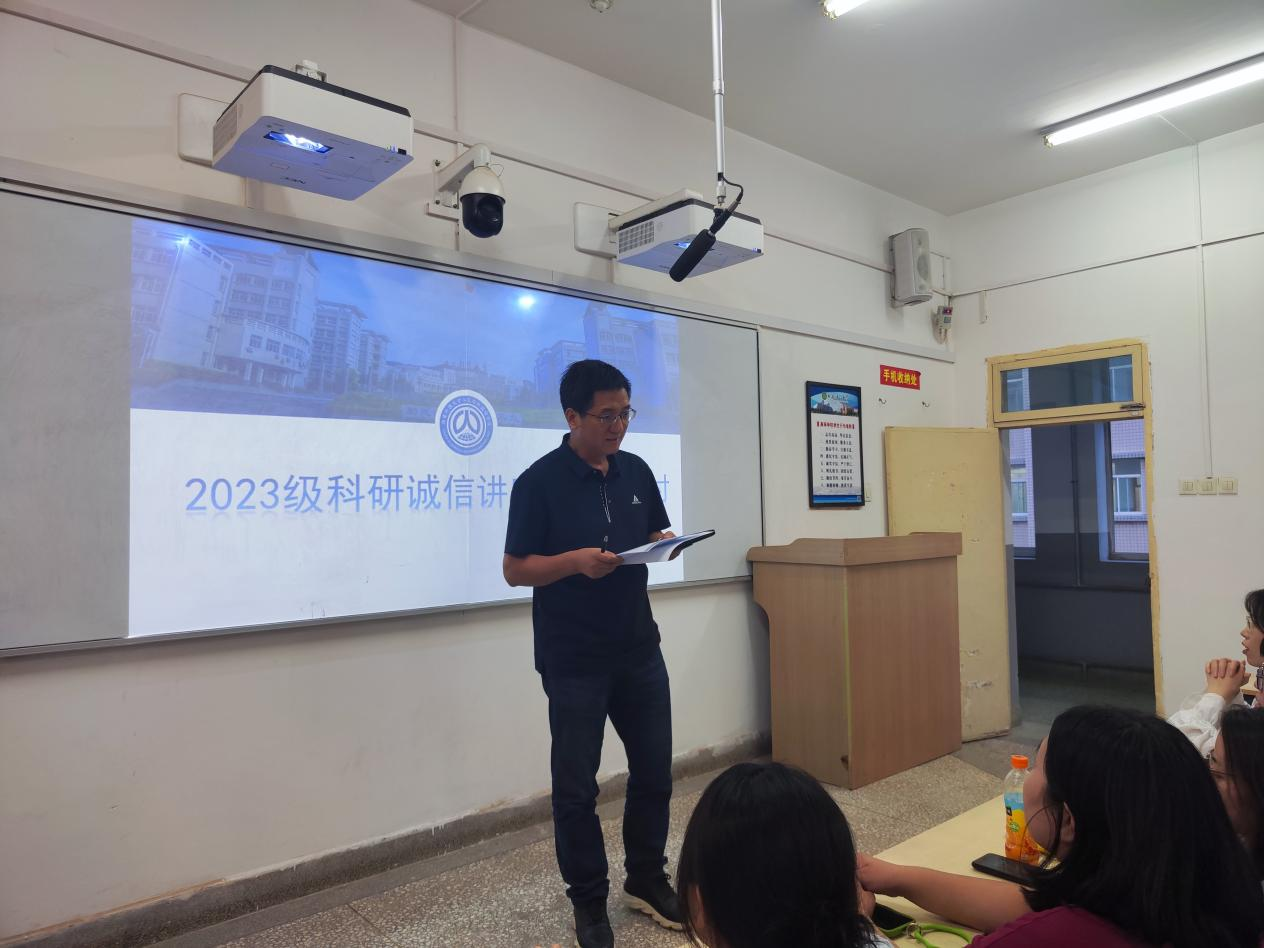为深入贯彻落实习近平总书记关于基础研究和作风学风建设的重要指示批示精神,2023年9月5日,澳门正规电子游戏平台举办科研诚信专题讲座与交流研讨会,澳门正规电子游戏平台副院长张辉担任主讲,院长王新平及2023级全体研究生新生参加本次讲座和交流研讨会。