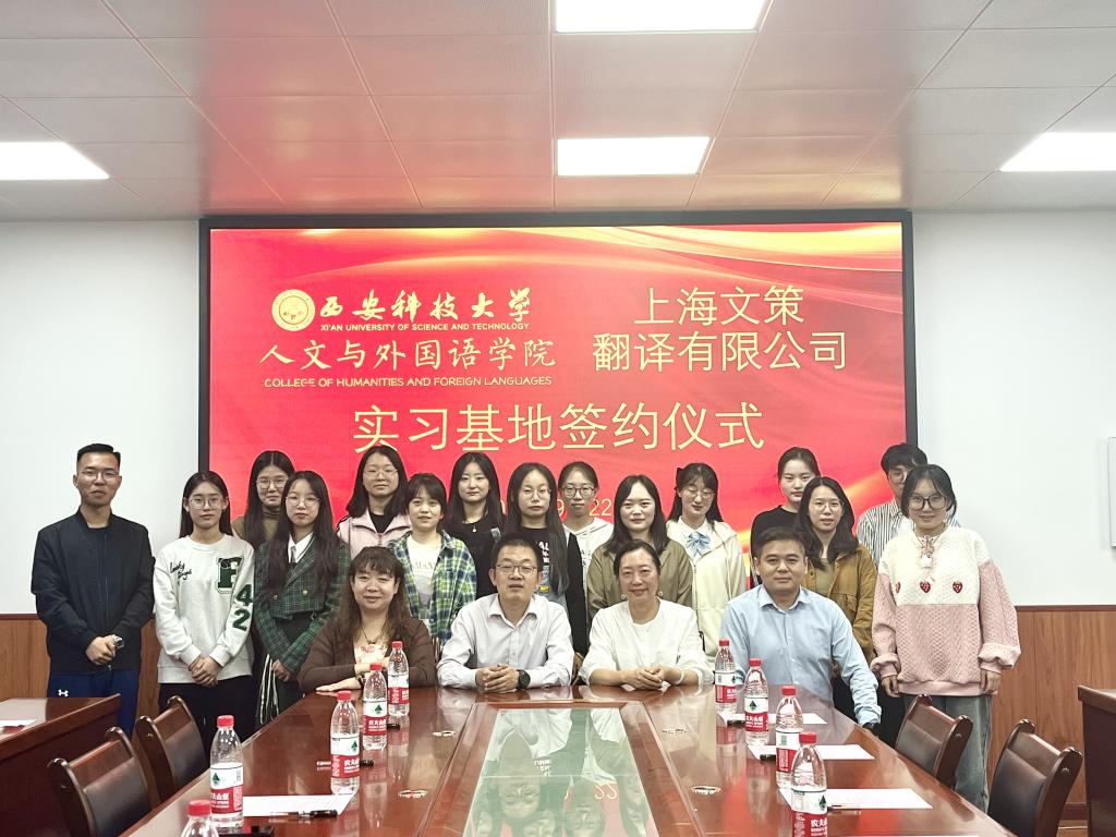 9月22日下午,澳门正规电子游戏平台与上海文策翻译有限公司在骊山校园举行实习实践基地共建签约仪式。上海文策翻译有限公司领导及代表,人文与外国与学院党委书记费秀水,澳门正规电子游戏平台副院长张辉,MTI中心主任张军锋、张梦原,研究生教务办主任邓晓菲,学工办主任、团委书记芮智刚,MTI学生代表等参加签约仪式并进行座谈交流。