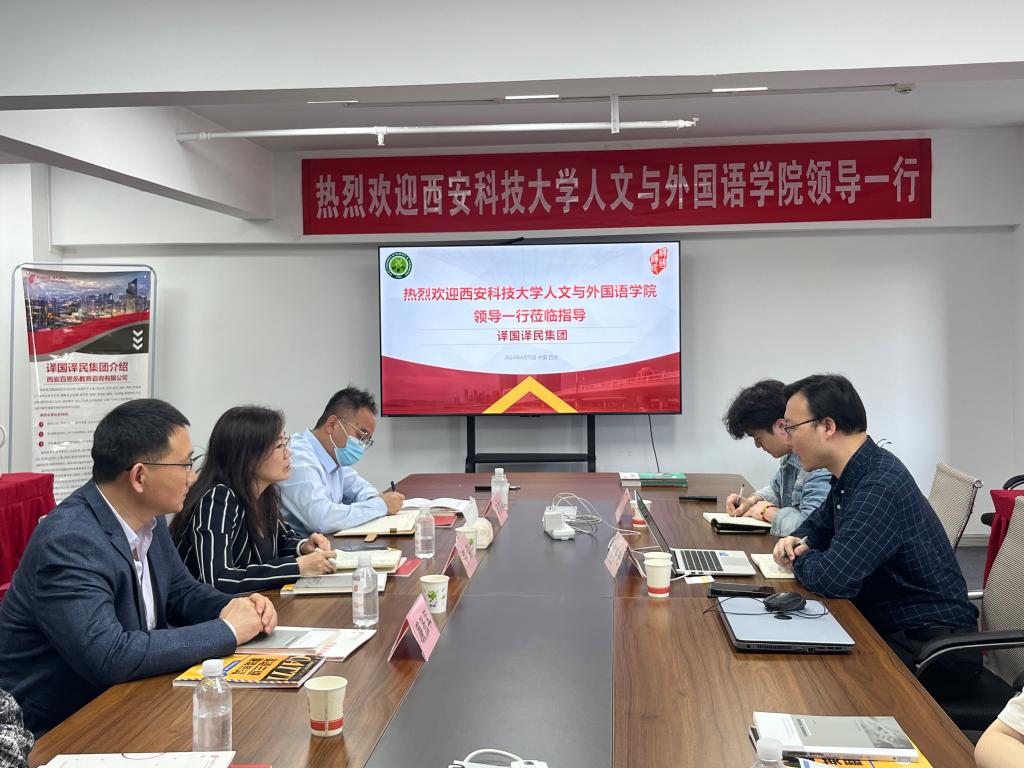 为推动2024届毕业生就业工作,4月12日,澳门正规电子游戏平台赴译国译民西安公司开展访企拓岗活动,译国译民西安公司校企总监沈海涛、商务专员陈闽樊,学院副院长李焱、英语系主任廉张军、学工办主任芮智刚、2024届毕业生代表参加了活动。