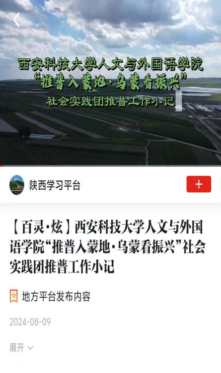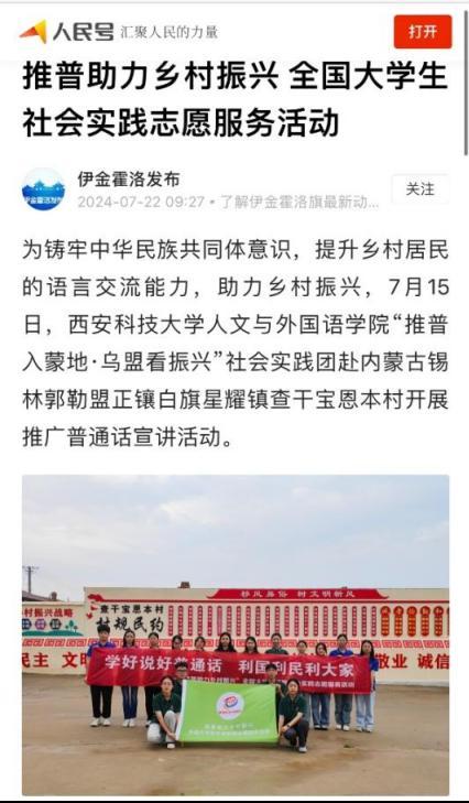 先后与当地教育局、学校、乡镇府签订合作协议,在普通话推广、支教服务、非遗传承、文化传播等方面形成长效机制,为推动少数民族地区文化交流传播奠定坚实基础。实践活动被推普助力乡村振兴微信公众号、内蒙古资讯、人民日报学习号、学习强国等媒体宣传报道。