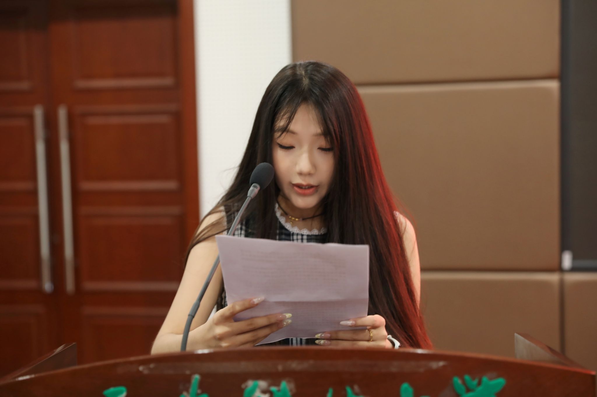 在校生代表安永琪向即将奔赴四方的学长学姐们致以诚挚祝福。她表示,学长学姐们的奋斗历程与卓越成就,是照亮前行道路的明灯。她将携手全体在校生,以学长学姐为榜样,深耕学业、笃行不怠,在求知路上奋勇前行。